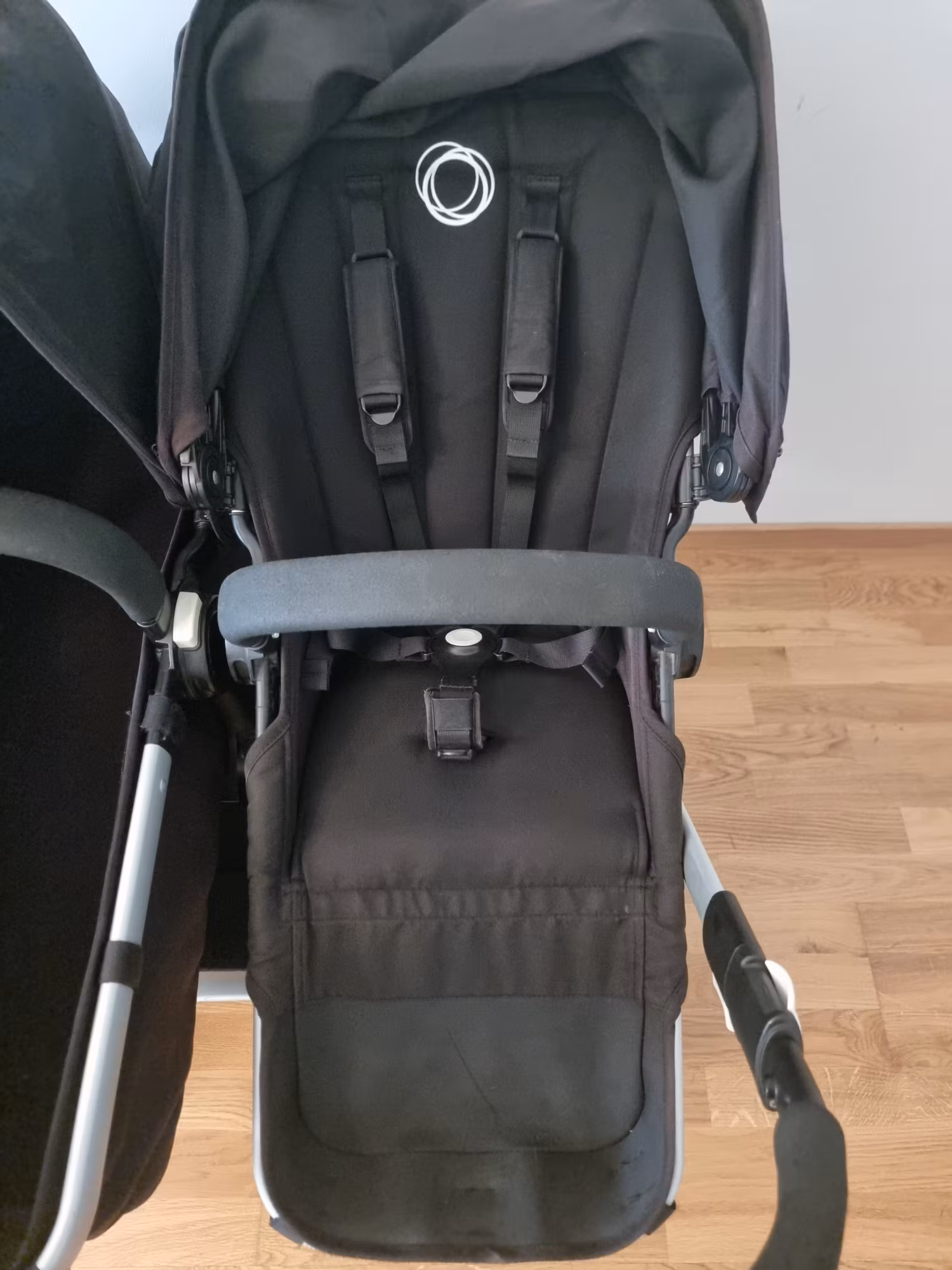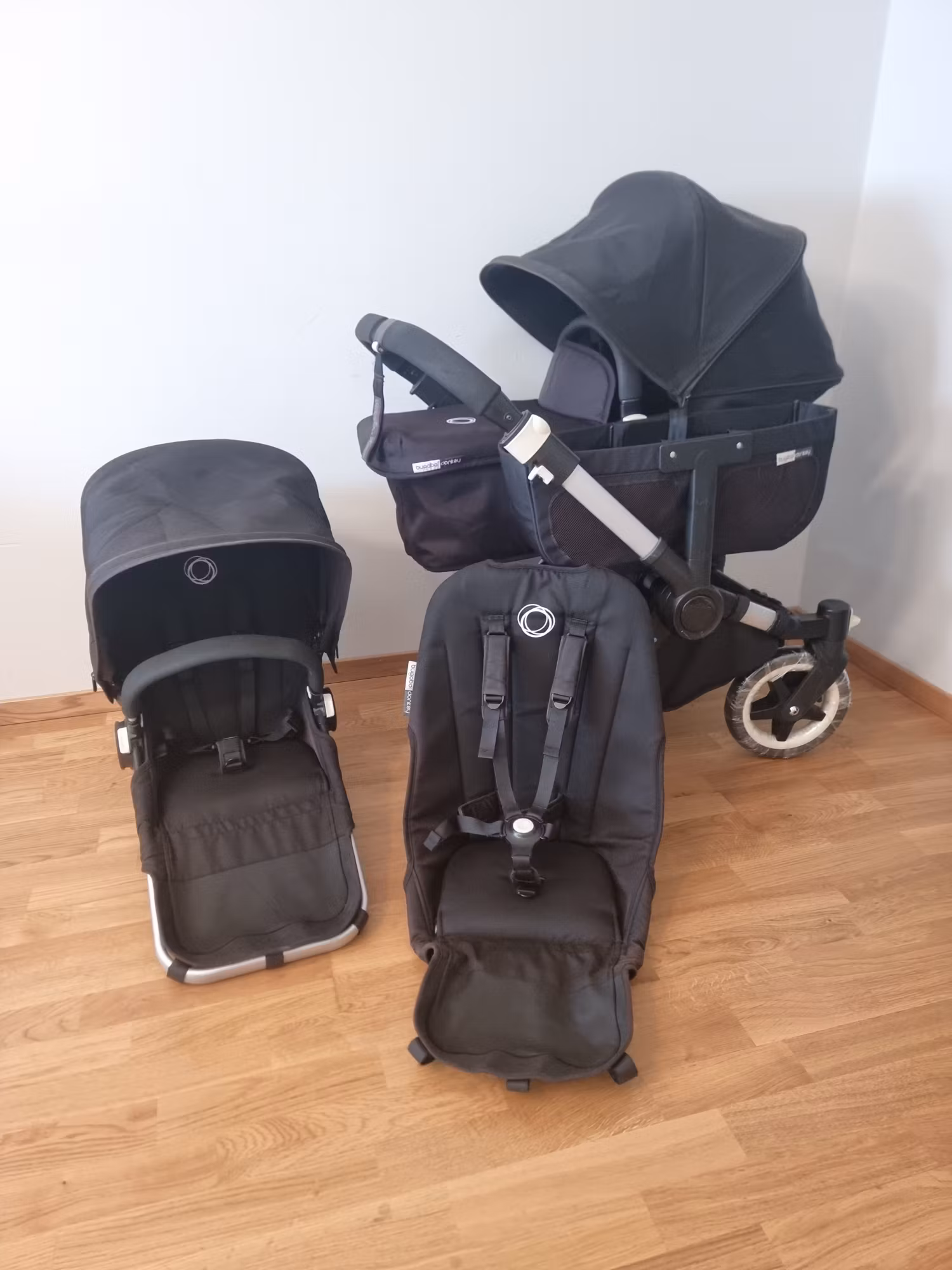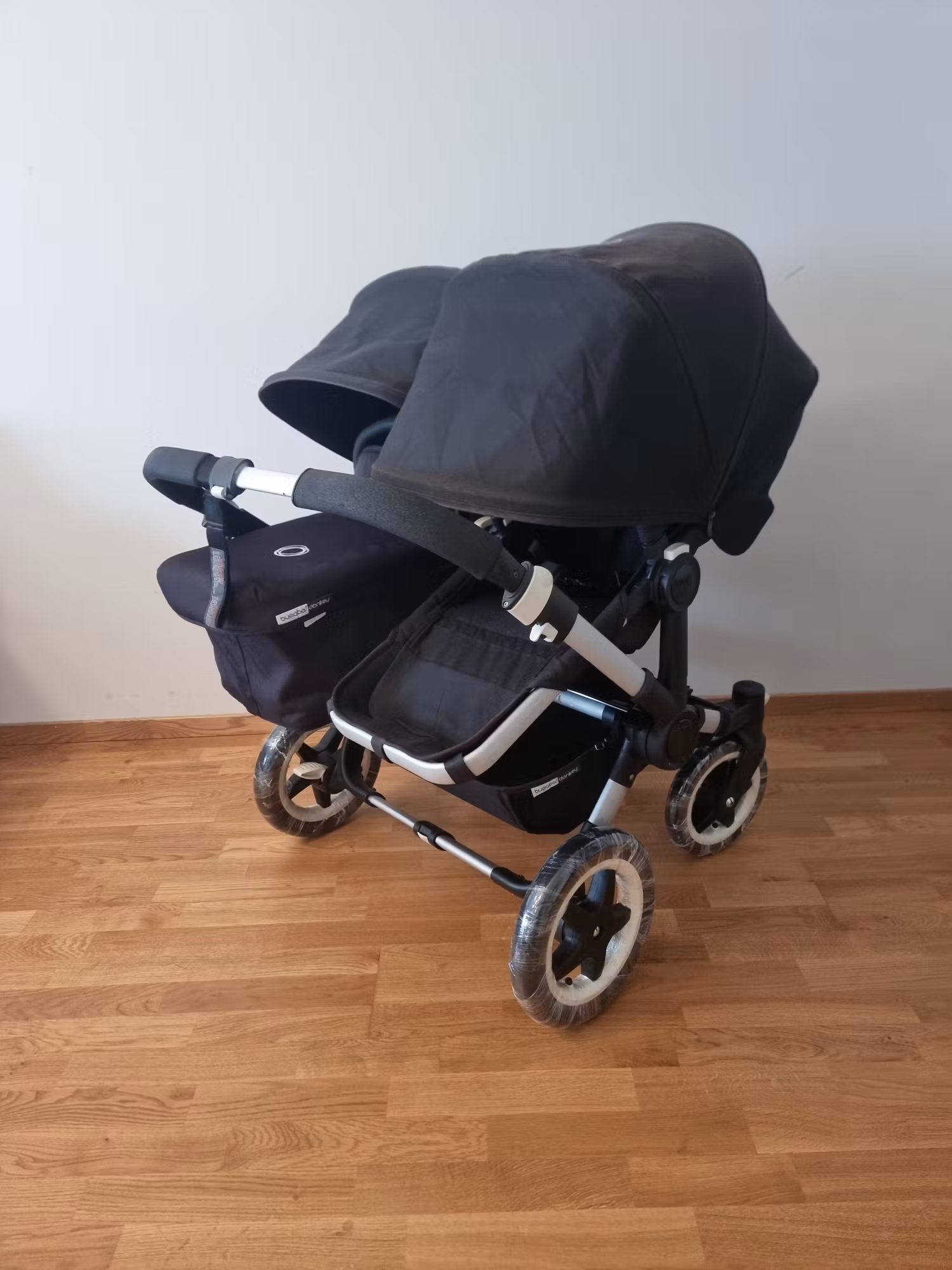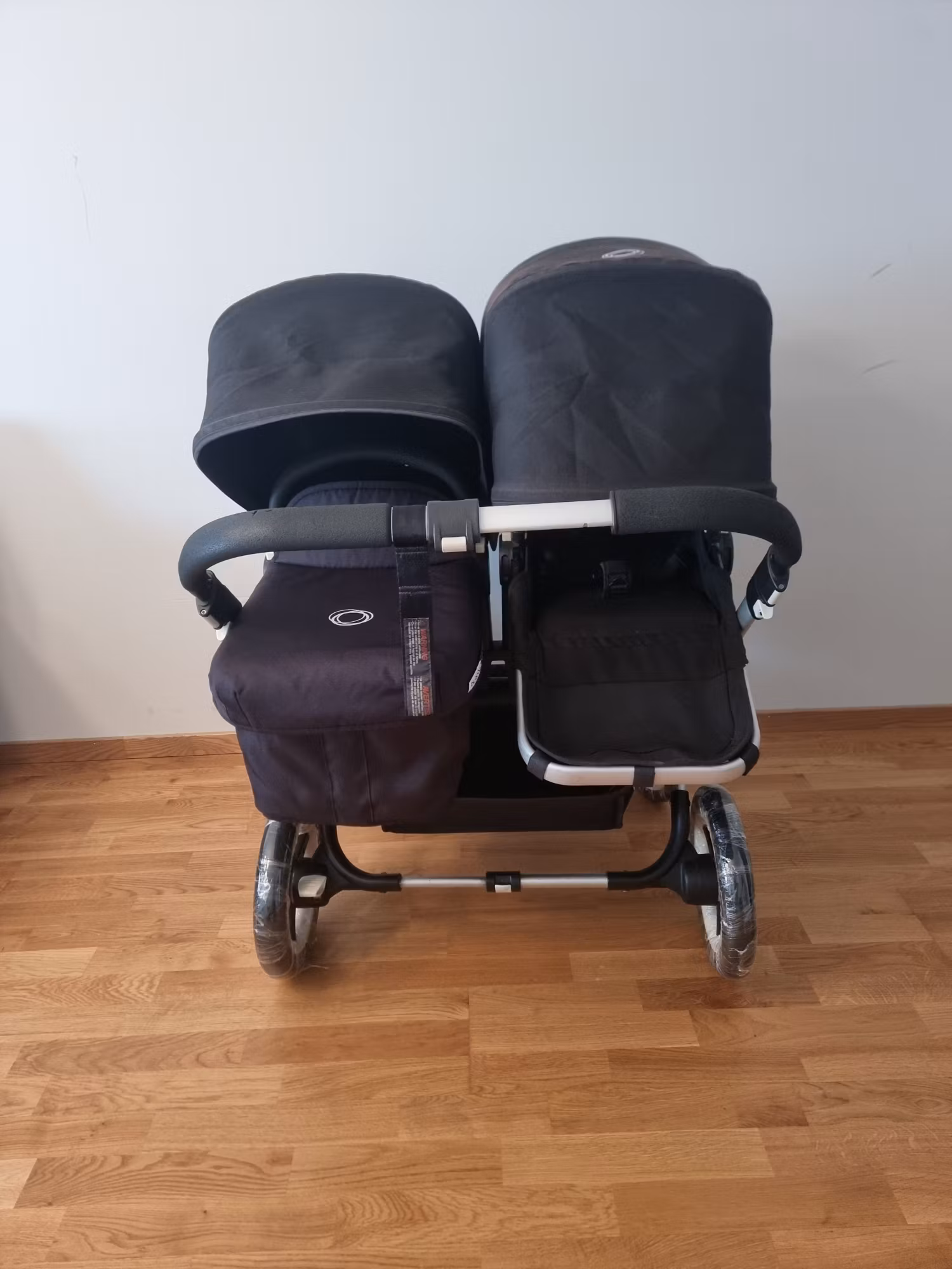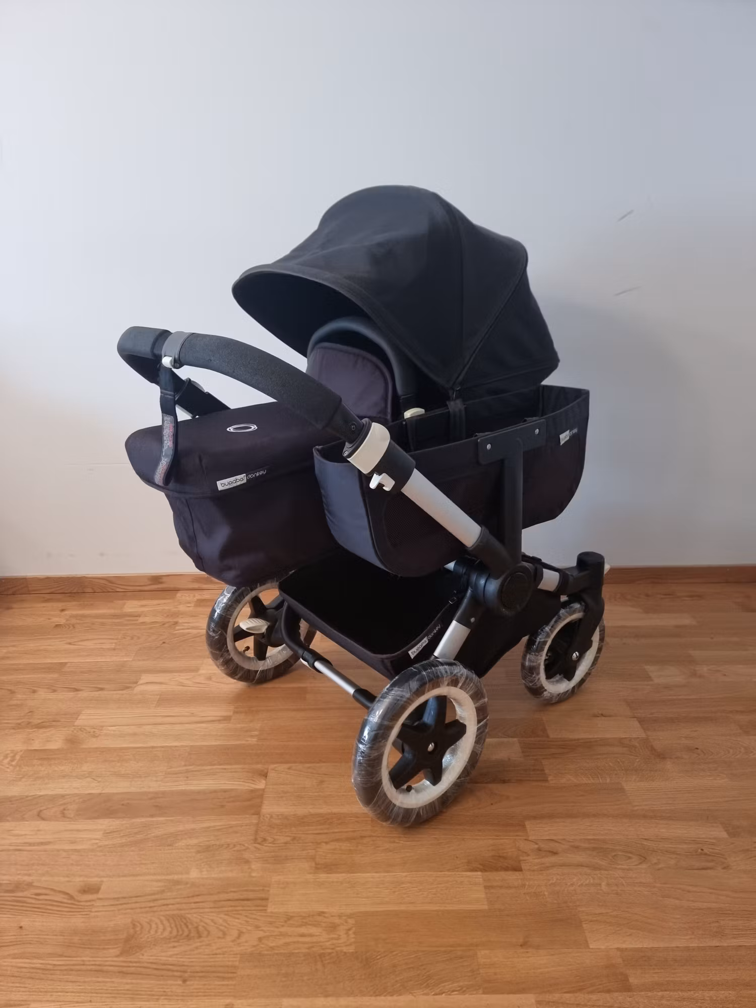 Bugaboo Donkey Duo søskendevogn i fin stand. Vognen kan bruges til 1 barn med sidekurv eller 2 børn samtidig. Alle stoffer er vasket, vognen er serviceret og rengjort inden salg.